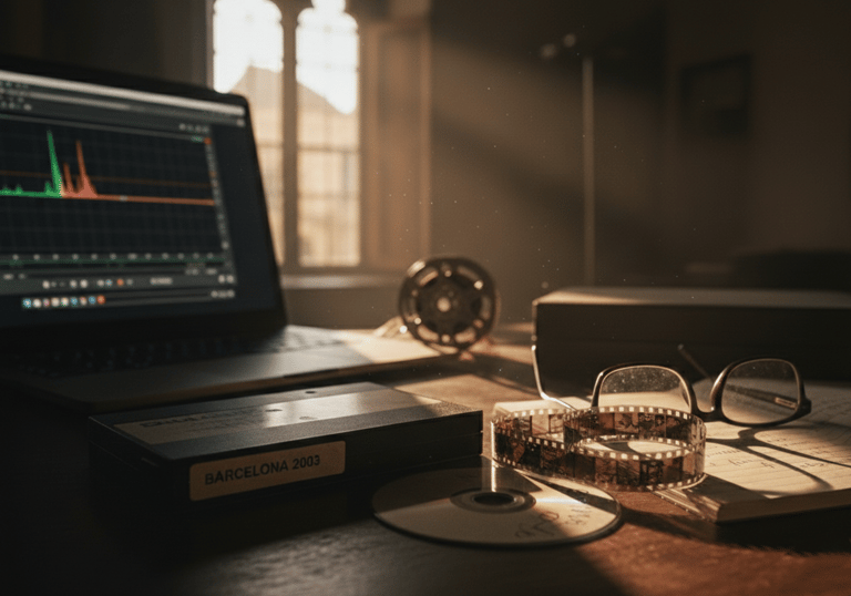 Ubicado en el corazón del Barri Gòtic, Vestigio Films es un estudio de postproducción especializado en la intervención y recuperación técnica de archivos audiovisuales. Bajo la dirección del editor y comunicador Alfredo Ipanaqué, el estudio aplica un rigor crítico y editorial a legados procedentes de soportes analógicos y digitales —como 16mm, 35mm, PAL y CD-R— que exigen un tratamiento profesional muy superior al volcado convencional.